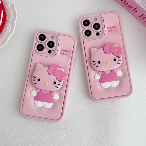 Funda de teléfono de TPU con soporte de gatito Rosa lindo 3D para Niñas para iPhone 12promax/13promax/14promax/15promax/16promax